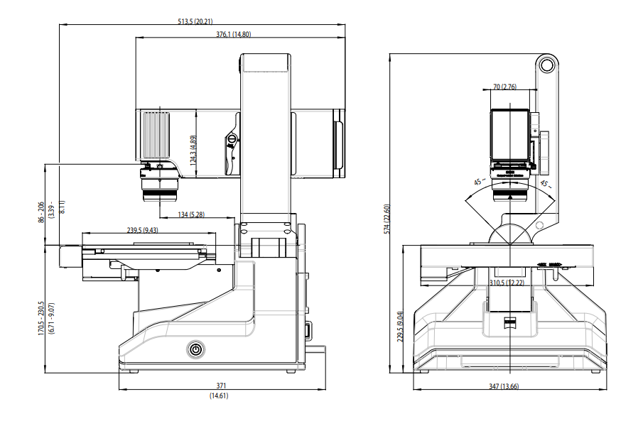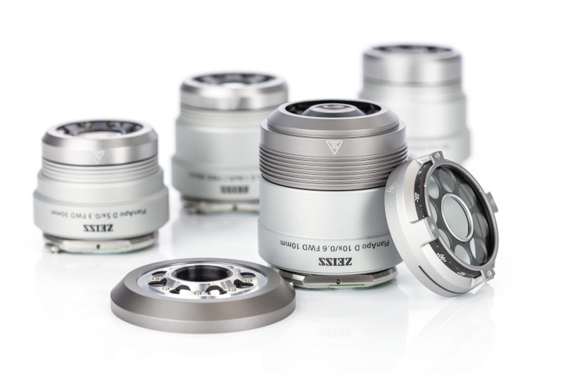 | Objective | Numerical Aperture | Working Distance (mm) | On-screen Mag* | Resolution (µm) | Depth of Field (µm) | Field of View (mm × mm) | Zoom |